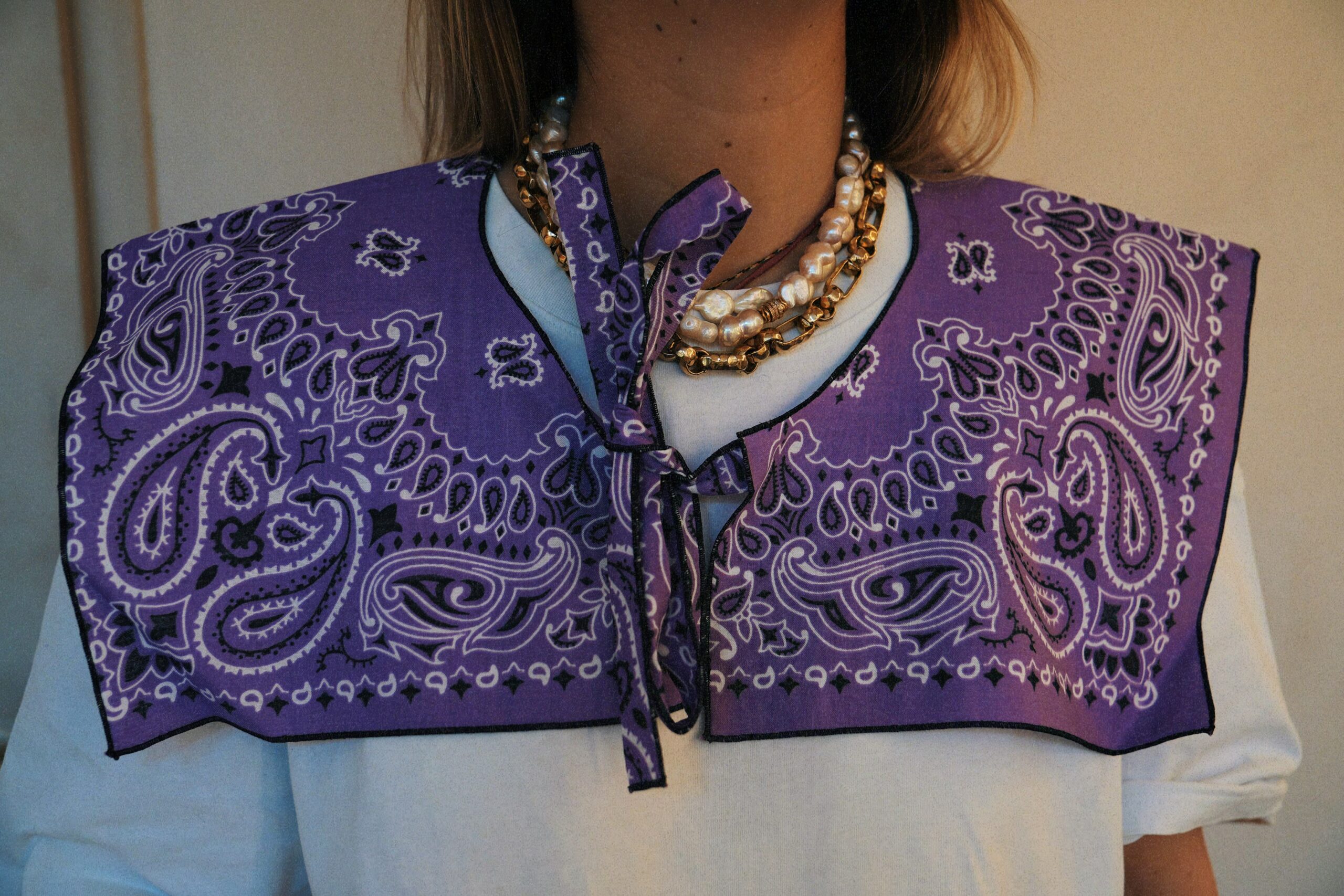 Nous avons transformer le bandana Monique en un col matelot ultra stylé ! Confectionné en de coton 100 % vosgienne ou en coton 100% made in USA.