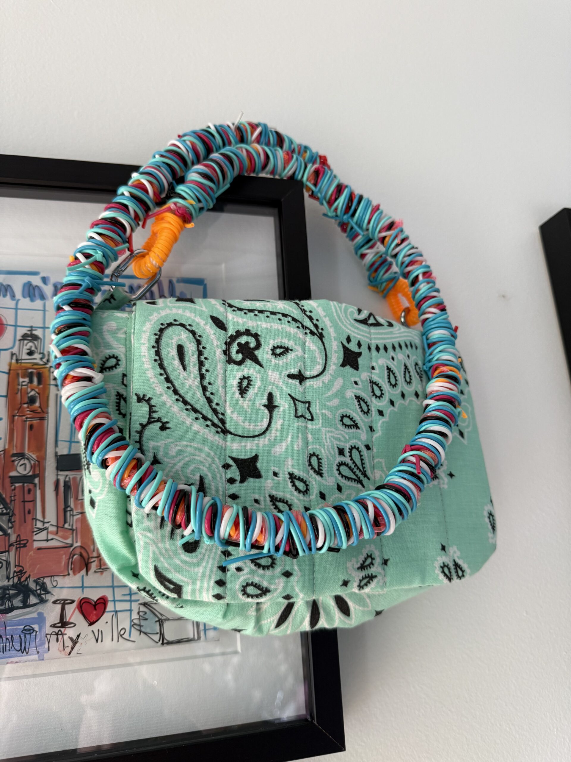 • Ses anses en scoubidous : tressées à la main, originales et résistantes.